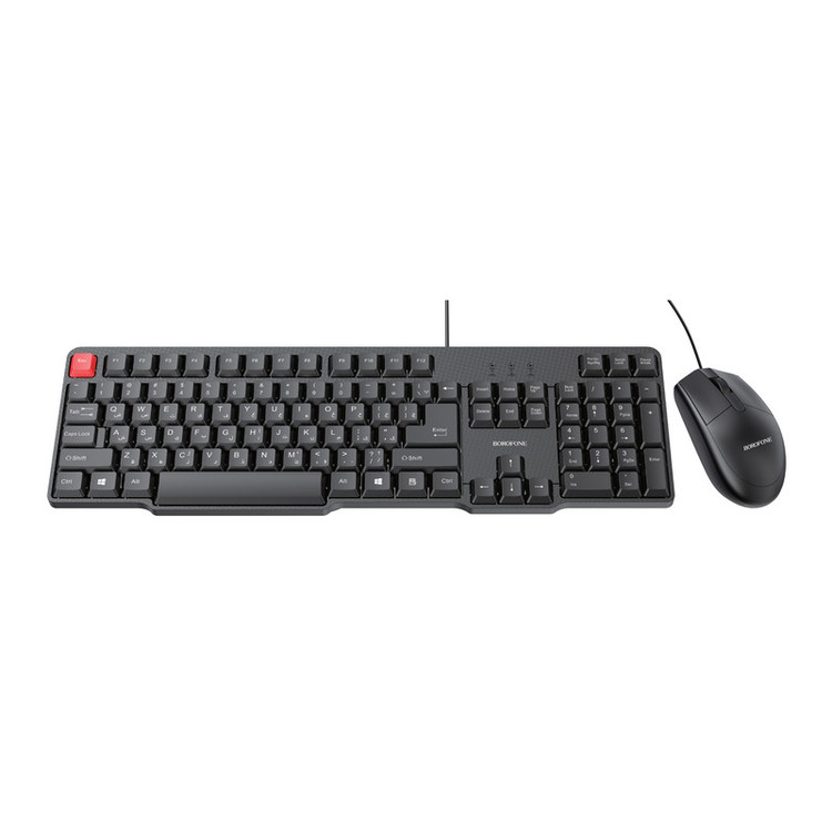 مدل کلید های صفحه کلید غشایی (کلید ها یکپارچه هستن و با لمس کمی بازخورد میگیرن) جنس اصلی بدنه سیلیکون مایع و ABS ضد قطرات آب، اگر سطح کیبورد را قطرات آب بپوشاند تداخلی در روند کار کیبورد ایجاد نمی کند نوع اتصال کیبورد سیمی نوع سری سیم USB-A طول کابل: ۱.۵ متر تعداد کلیدهای کیبورد ۱۰۴ کلید جنس درپوش کلید صفحه ابریشمی پرینت شده با UV روی کاراکترهای درپوش کلید عمر سرویس دهی کیبورد ۸۰۰ وات بار سایز ۴۴۰x۱۳۸x۲۵ mm وزن تقریبا ۴۱۳ گرم